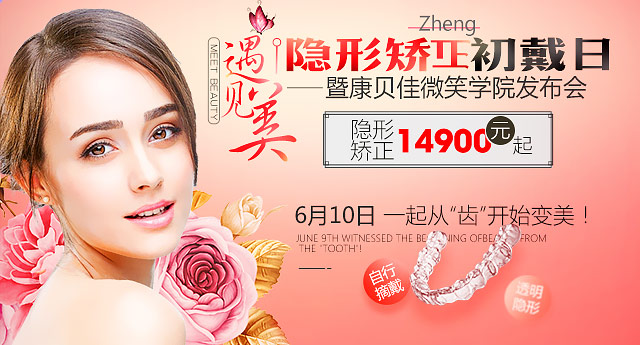 看不见的矫正,看得见笑容,谁说箍牙不能开心笑!隐形矫正初戴日期待您的参与,专属你的牙套体验日,康贝佳与您不见不散!